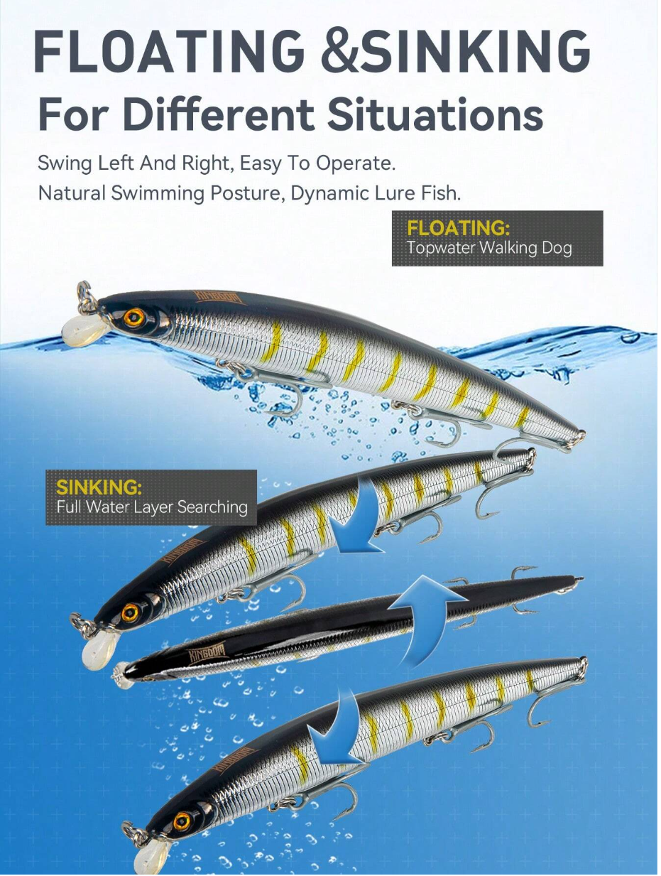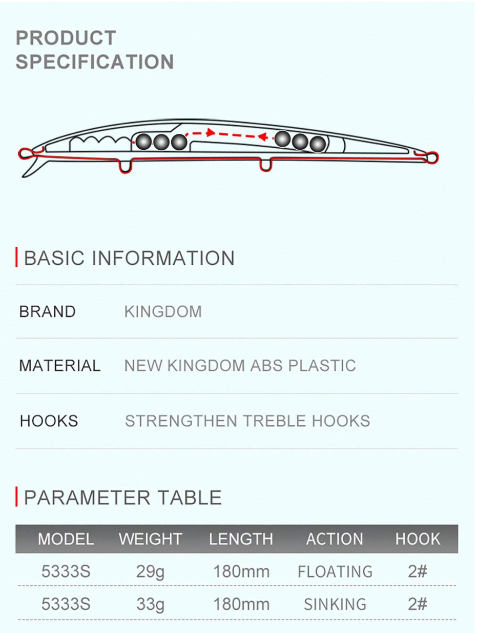 Leurres de pêche en mer KINGDOM 180 mm 29 g 33 g, nageur waggler, flottants et coulants, hameçons VMC, accessoires de pêche