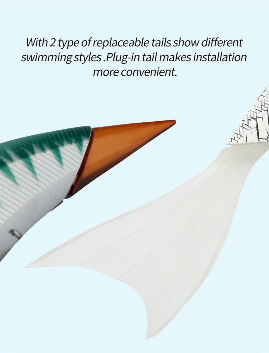 Featuring two replaceable tails for different swimming actions, it perfectly imitates real fish movement in the water.